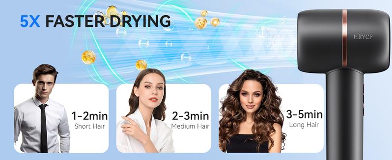 3. How fast can it dry hair? Short hair dries in 1 minute, medium hair in 2 minutes, and long hair in 4 minutes—perfect for busy routines.